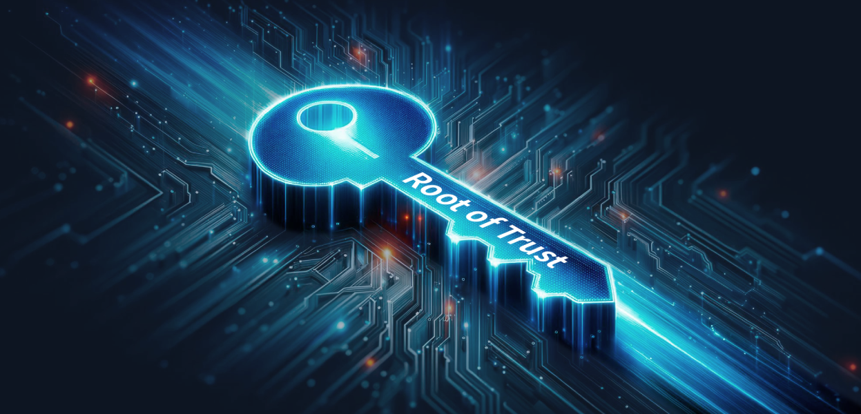 信頼の根(root of trust;RoT)はIoTセキュリティにおいて重要な役割を果たし、安全な信頼チェーンを構築するための基盤です。信頼チェーンとは、各デバイスから信頼の根に至るまでの一連の信頼関係を指します。組織特有の信頼の根を確立することで、企業や組織は信頼チェーン内のすべての重要な要素を完全に掌握することができます。