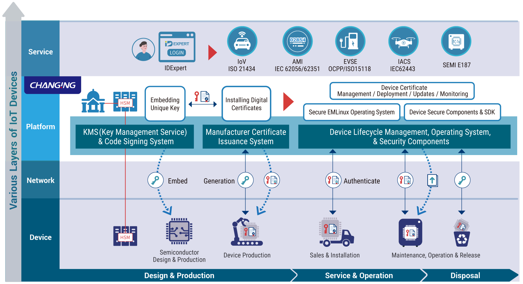 IoTデバイスにおいては、証明書や鍵は更新可能、交換可能、かつ取り消し可能であるべきです。これにより、システムのセキュリティを確保できます。同時に、オンライン操作を通じて、操作権限の設定、鍵の設定、証明書のインストール、および鍵のバックアップと復元記録の確認が可能です。これにより、管理の有効性とセキュリティが確保されます。