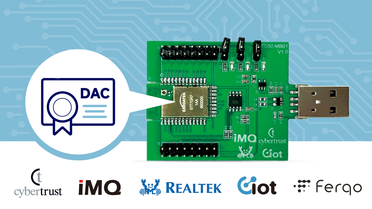 このソリューションにおいて、5社はそれぞれの強みを発揮しながら緊密に連携し、包括的なエコシステムを構築しました。Cybertrust は国際的な DAC 証明書サービスを提供し、製造段階からデバイスの正当なアイデンティティを保証。iMQ 漢芝電子はセキュアエレメントによって鍵とデータを保護し、デバイスのセキュリティを強化。Realtek 瑞昱半導体は Thread と BLE を内蔵したチップとモジュールを提供し、安定した相互接続を実現。全景軟體 Ciot は Unified SDK と CLM システムにより、多様な MCU のセキュリティ統合を簡素化し、DAC 証明書の大規模展開を迅速化。Ferqo は AI 駆動のスマートオートメーションとエネルギー管理に注力し、クラウドデータ分析を通じて家庭機器とエネルギーシステムを緊密に連携させます。5社の技術融合により、製造業者は低コストかつ短期間でスマートホームとエネルギー市場に参入でき、国際競争において一歩先んじることが可能となります。
