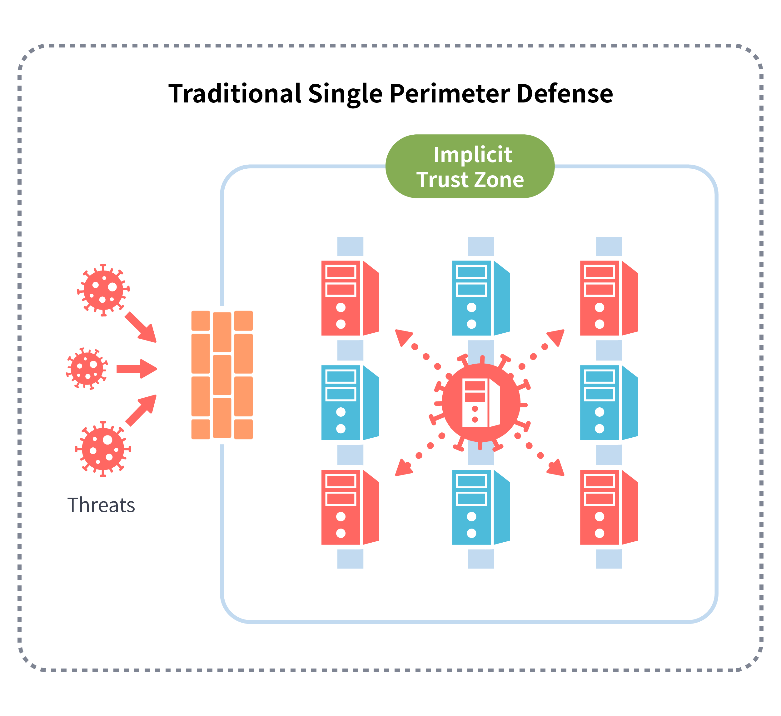 具体的な境界はなく、ユーザーとデバイス、データとアプリが異なるネットワークに。