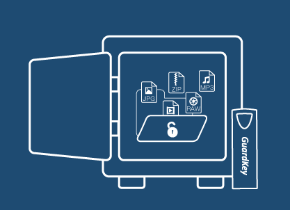 透過專屬應用程式,在電腦及雲端空間上自由建立數位保險箱,將私人檔案存放在數位保險箱裡,資料就能自動加密隱藏,需要插上「GuardKey智慧加密碟」才能顯示檔案。同時還可以使用手機瀏覽雲端加密資料,並即時加密手機裡的重要照片及影片。再也無須擔心有心人士竊取你的檔案。