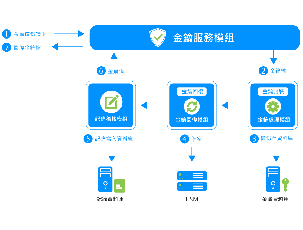 可使用FIPS 140-2 Level 3 驗證通過之硬體安全模組(HSM),支援RSA 2048-4096/ECC192-521金鑰長度