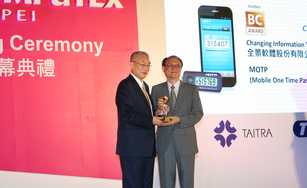 由全景軟體開發的「MOTP行動動態密碼系統」今年參加由Computex大會所舉辦的 ‘Best Choice Award’選拔,從近500件參賽作品中脫穎而出,榮獲『security類別』唯一金獎「Golden Award」殊榮,與其他7個獲獎產品並列前8強!