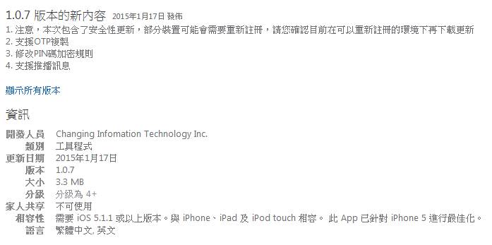 MOTP 1.0.7更新iOS APP,升級最新版本注意事項 :