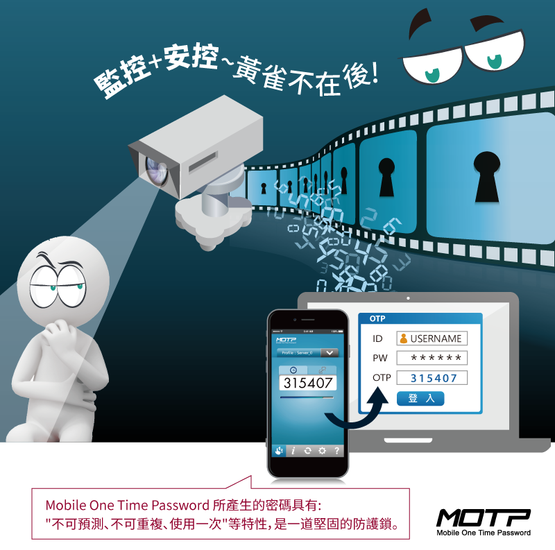 假設IP Cam的登入系統結合動態密碼的軟體,直接整合在監看APP上,讓使用者在每次登入時,將這種由特定演算法產生的「一次性密碼」作為登入密碼,駭客就算偷得了用戶的IP位置、登入帳號,但在破解密碼這一塊便無計可施,如此一來,才能為IP Cam的廣大消費者群帶來真正的安心。