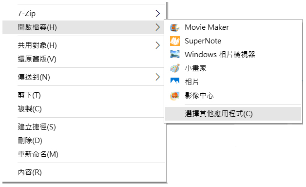 2) 選擇[開啟檔案]->[選擇其他應用程式]