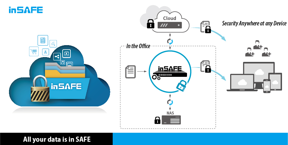 inSAFE不僅是電腦端簡易方便的自動加解密代理,它更能強化異地備援安全性,使企業的備份資料庫得到完整的保護,就使用者端而言,無論是存取內部或公有雲的加密檔案,均可享有快速、通透的瀏覽,無須改變使用習慣。
