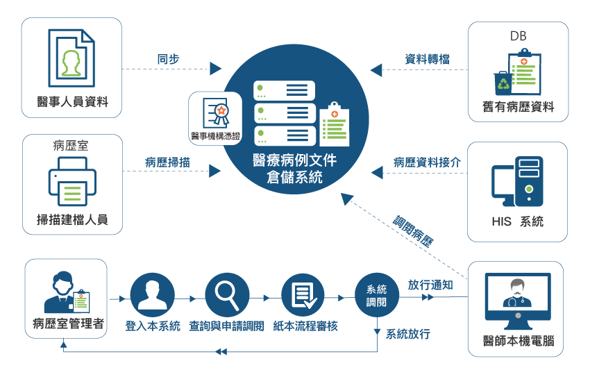 圖:【CIS全景醫療病歷文件倉儲系統】流程