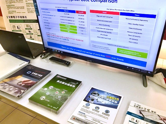 | 『中區醫院資訊e聯盟』研討會中,由鼎盛資科所展示的全景軟體「TSA時戳伺服器」能夠解決現今因HCA網絡頻寬不足而導致簽戳延遲狀況。 | |