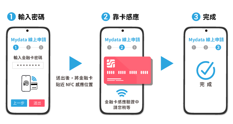 MyData線上申請可使用自然人憑證卡、晶片金融卡等多種方式,但大多需搭配電腦與讀卡機才能使用,無法直接在手機上完成申請,造成民眾諸多不便,為解決這些問題,全景軟體與永豐行動銀行APP (APP下載)推出「手機NFC感應金融卡」創新方式,民眾只需2步驟就可完成驗證,僅需在Android手機上輸入具感應功能的金融卡密碼後,再以金融卡感應手機NFC位置,即可在永豐行動銀行APP上完成MyData線上申請個人財力證明,享受永豐銀行提供的數位金融便利性,申請流程詳見永豐銀行官網 (活動網頁)。