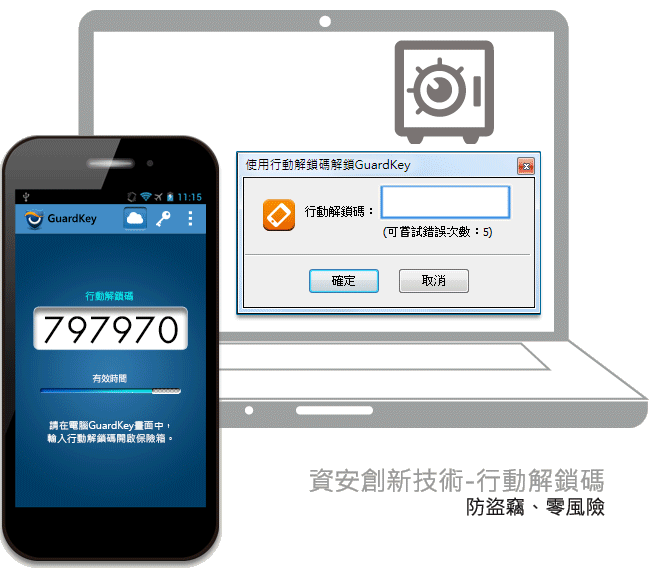 舊版GuardKey的「解鎖」動作須將GuardKey接上PC的USB槽來執行,新版GuardKey則能省下插拔USB的步驟,更不必隨時攜帶GuardKey,當用戶想開啟檔案保險箱時,可使用手機或平板電腦上的GuardKey Viewer產生行動解鎖碼,把這組密碼輸入PC同樣可以開啟加密的檔案保險箱進行編輯。